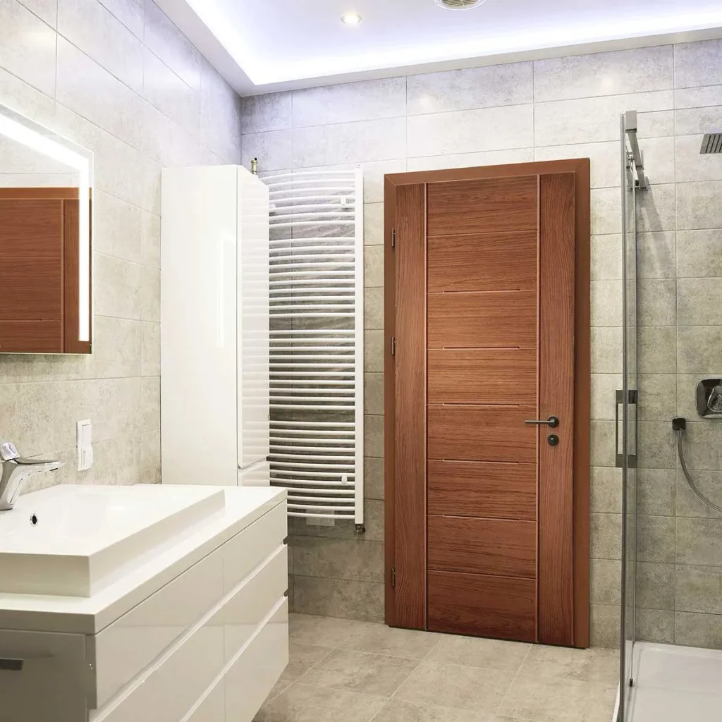 Pintu Kayu: Mimpi Buruk di Area Lembab Kayu memang indah, namun bukan untuk toilet. Serat kayu akan menyerap uap air secara perlahan, menyebabkan pembengkakan, perubahan bentuk, dan pada akhirnya melapuk. Dalam waktu singkat, Anda akan melihat jamur hitam berkembang di permukaannya, yang tidak hanya jelek secara estetika tetapi juga berisiko bagi kesehatan. Ancaman terbesar adalah rayap, yang bisa menggerogoti pintu dari dalam tanpa Anda sadari hingga pintu tersebut roboh.