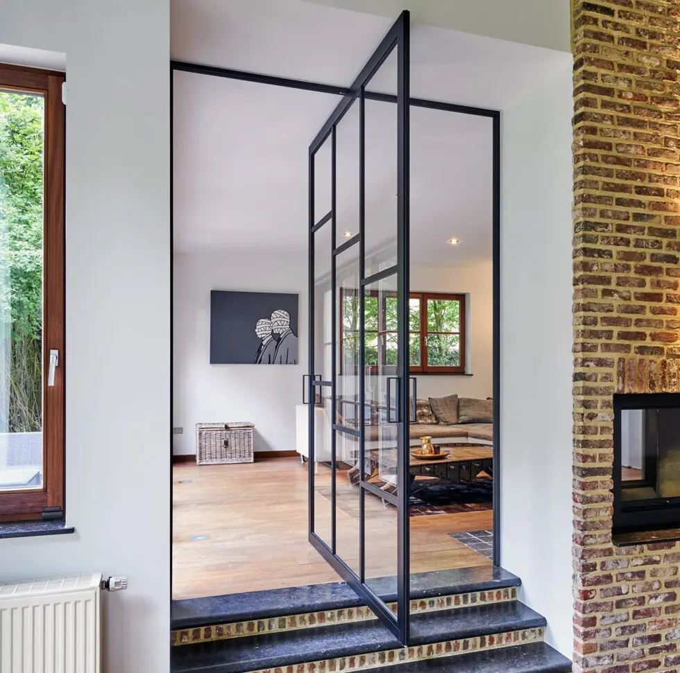 • Pintu Geser (Sliding Door): Ideal untuk ruang terbatas atau akses ke balkon/teras, memberikan kesan lapang dan pandangan tanpa batas.